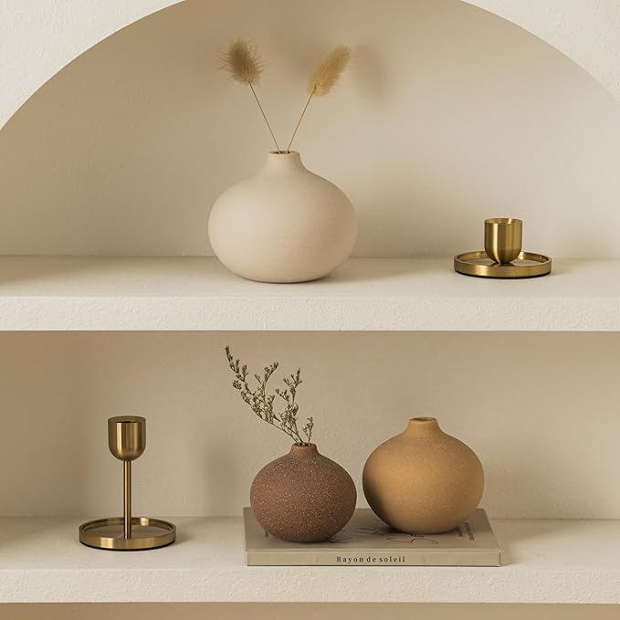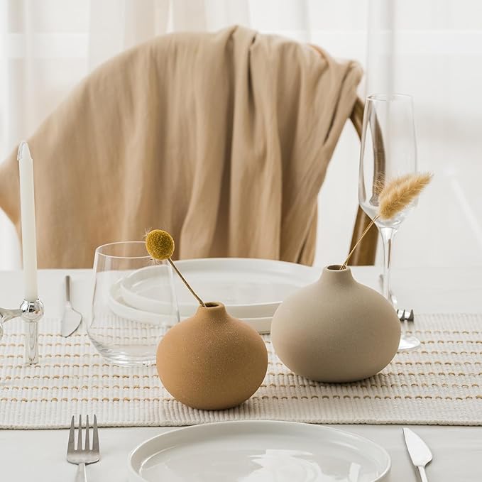 - 【Small Vase Set of 3】 This set includes three small ceramic vases in sizes 4.3" x 3.9", 3.5" x 3.2", and 3.1" x 2.8". Perfect as a centerpiece or for individual displays, these mini vases add a touch of modern farmhouse warmth with minimalist charm to any room.