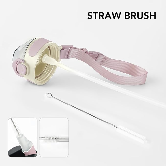 - Humanized Design: The one-hand operation button allows for easy access to water. Highly suitable for boys and girls, and all ages. The flip-top lid of the insulated bottle is used a secure lock, making it dust-free and leak-proof. The included straw brush makes maintaining your bottle's cleanliness uncomplicated and efficient.