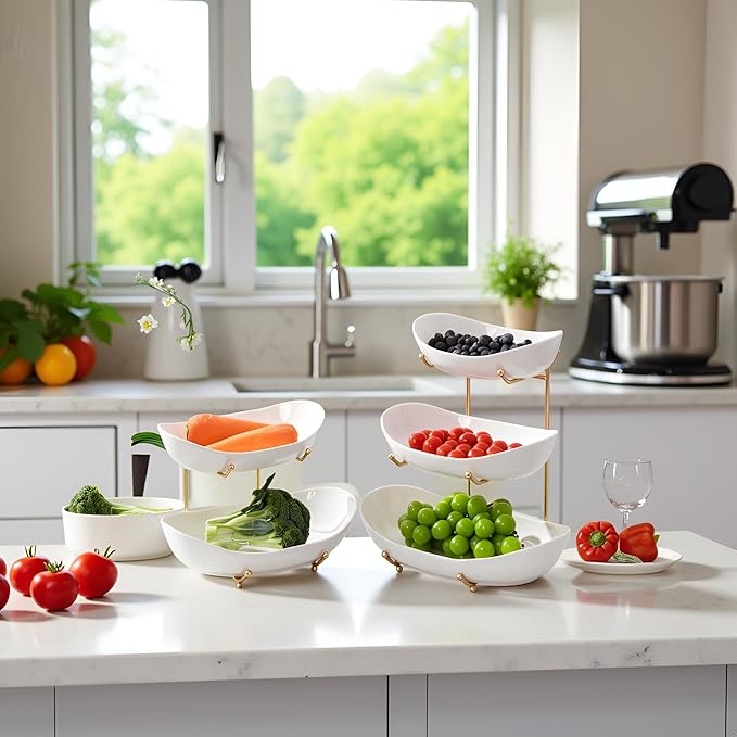 - 【Beyond a Fruit Bowl】: Beyond a fruit bowl for kitchen counter: Use in bathrooms for toiletries, serve desserts as serving trays for party, display snacks in living rooms, or create stunning tiered fruit platter during brunch.