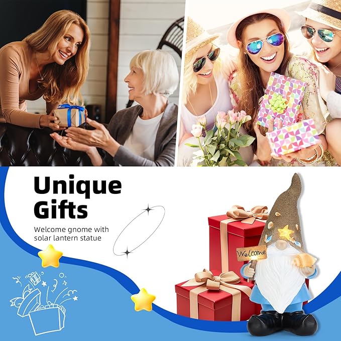 - 【Use on Multiple Occasions】: The solar powered gnome garden statue is perfect as a housewarming gift, anniversary gift, birthday gift christmas gift, mother's day gift or even an engagement gift for family and friends. Also a perfect decoration for balconies, courtyards, gardens, and lawns