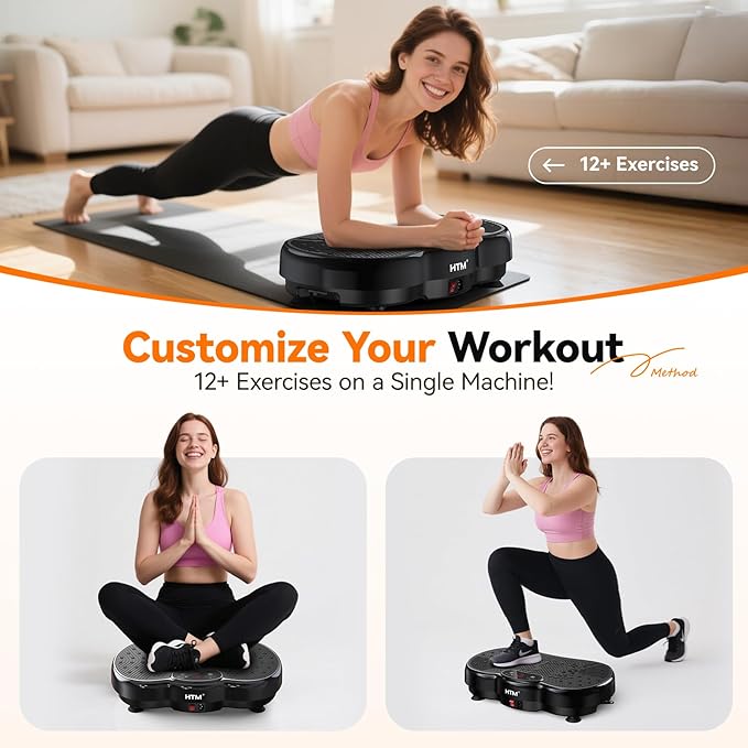 - 300lbs Capacity & Full-Body Activation – Engineered for stability, this vibration plate supports up to 300lbs. High-frequency vibrations engage muscles to improve strength, flexibility, and balance—ideal for fitness routines, toning, and post-workout recovery