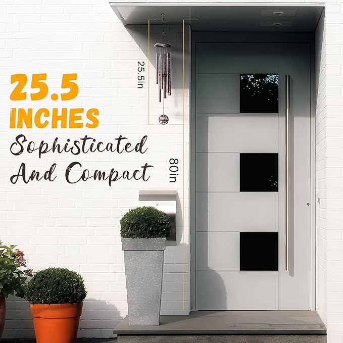 - 4.High-quality Craftsmanship:25-inch classic wind chime with 6 anodized aluminum tubes and UV-resistant ropes,Each tube are wrapped and protected. Waterproof and built to withstand outside all weather conditions.