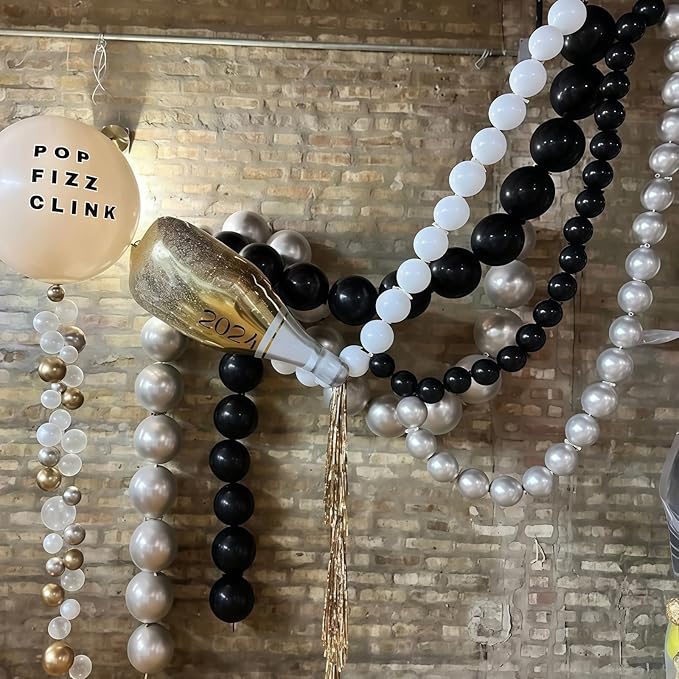 - Connecting Balloons Wide Use - The black and metallic silver tail balloons is suitable for various event scenarios. Whether it is for kids or aldult birthday party decor, baby shower, proposal, wedding, bridal shower, anniversary, graduation party decorations, concert, new year celebration decors, or commercial event decorations, it can play a key role, allowing you to easily DIY various favorite shapes and turn creativity into reality.