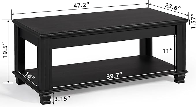 - [Spacious Storage Space]: Large tea table Measuring 47.2" W x 23.6" D x 19.5" H. This rectangular coffee table with storage includes a spacious open storage levelβgreat for organizing books, decorative baskets, or everyday essentials. Its functional design makes it an excellent choice for those looking for square coffee tables for living room spaces.