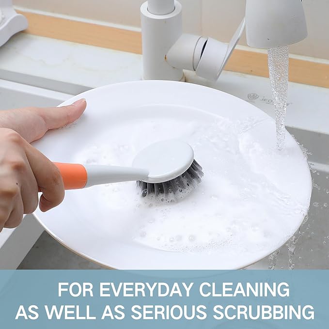 - Space Saving Hanging Design: the dish brush for kitchen comes equipped with a convenient hanging handle, saving your kitchen space and keeping your area neat; Keep your kitchen tidy and organized with this practical kitchen scrub dish brush