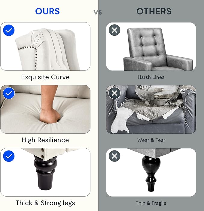- 【Stylish Mid-Century Look】– The wingback silhouette, button-tufted design, and solid wood legs add a touch of sophistication to any room decor.