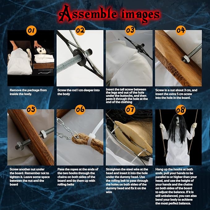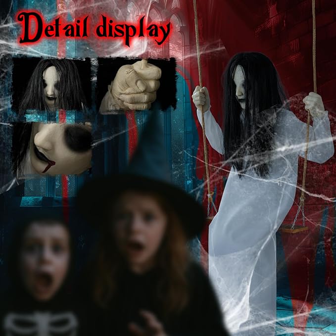 Halloween Decorations Outdoor Indoor Haunted Swinging Girl, Scary Ghost on Swing for Yard Porch, Creepy Motion Easy to Hang