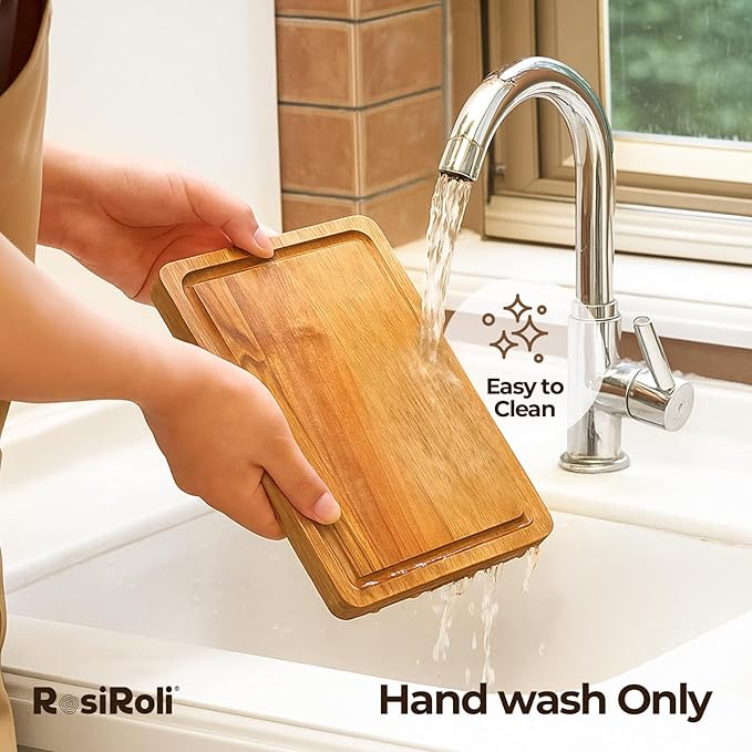 Acacia Wood Cutting Board for Kitchen - 0.8 inch Thick Wood Charcuterie Cheese Board with Side Handles and Juice Grooves, Wooden Chopping Block for Meat and Veggies, 11.5x7 inch