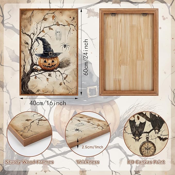 - 【Premium Quality Art Print】This large vintage Halloween picture wall art is carefully crafted with high quality canvas and advanced HD printing techniques to ensure that each print is clear and crisp. Resist fading and preserves as much detail and vibrant color as possible. The decorative painting is reinforced with a sturdy PS frame to provide solid support and protection against potential damage.