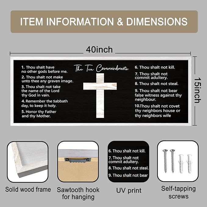 - 【Encouraging Words】The Ten Commandments large hanging wood sign adopt minimalist letters on the white background, showing constant reminder of faith and devotion in any setting and you passion for god, adding a touch of elegant, and classic beauty to your space and giving people a calming feeling.