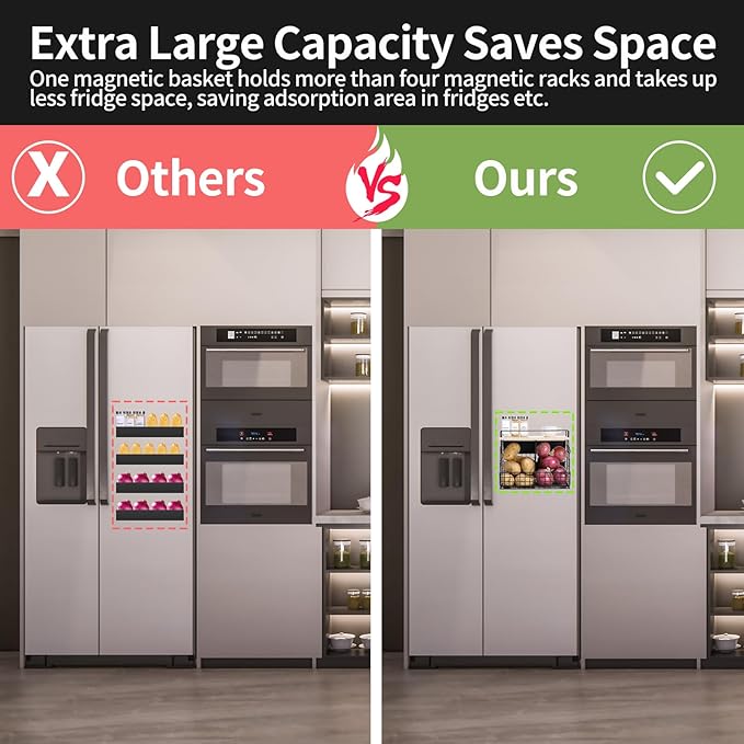 Large Magnetic Shelf for Fridge, Fruit and Vegetable Storage Wire Basket, Potato And Onion Storage Bin for Kitchen Organizers, Magnetic Spice Rack for Refrigerator, Kitchen Counter, RV and Laundry
