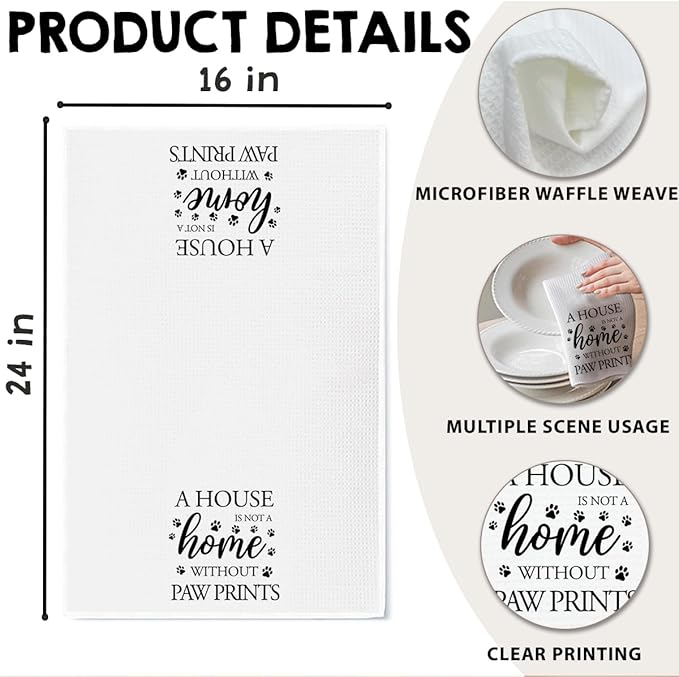 Dog Hand Towel, A House is Not a Home Without Paw Prints, Waffle Weave Microfiber Pet Kitchen Towel, Cute Decor for Dog Lovers