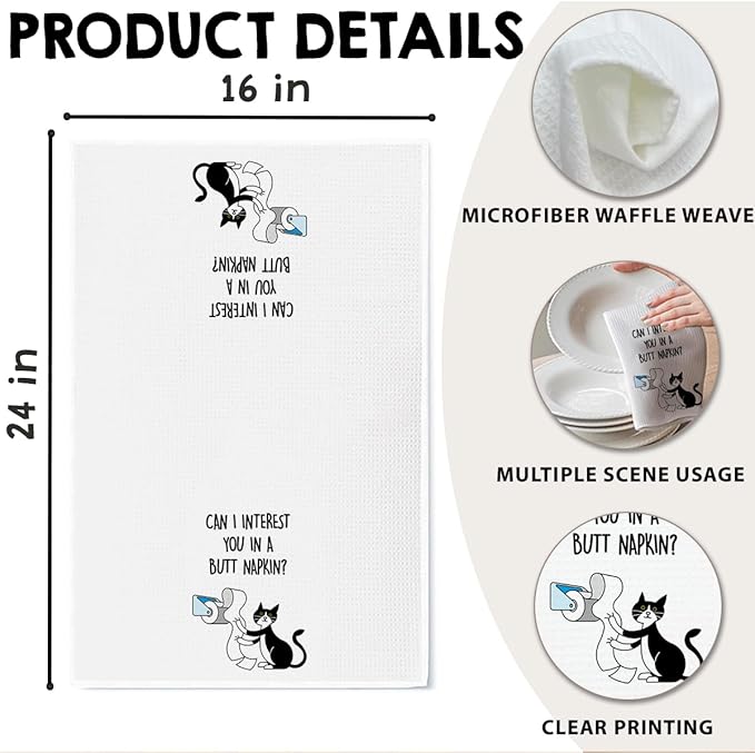 - Multiple Uses: Functional as a tea towel, dish cloth, or bathroom hand towel—blends humor and practicality in every room.