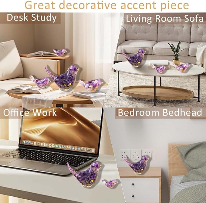 Crystal Bird Figurines, Resin Animal Statues, Miniature Decorative Gravel Birds, Home Decor (4PCS-Amethyst)