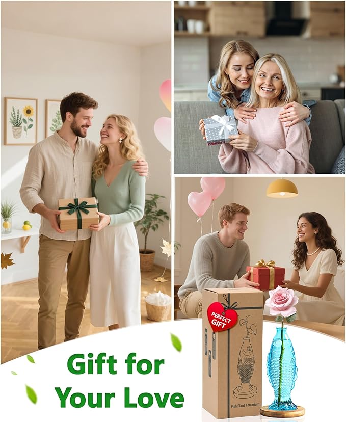 - Home Office Decor: Add a touch of elegance to your dining table or bar counter, or windowsill! The fish-shaped vases make great conversation starters and look stunning with flowers.Brings bursts of colorful art into your life.Set of Fish-shaped hydroponic vases in diverse sizes and vibrant colors are ideal for home decor, office settings, or as unique gifts for plant lovers