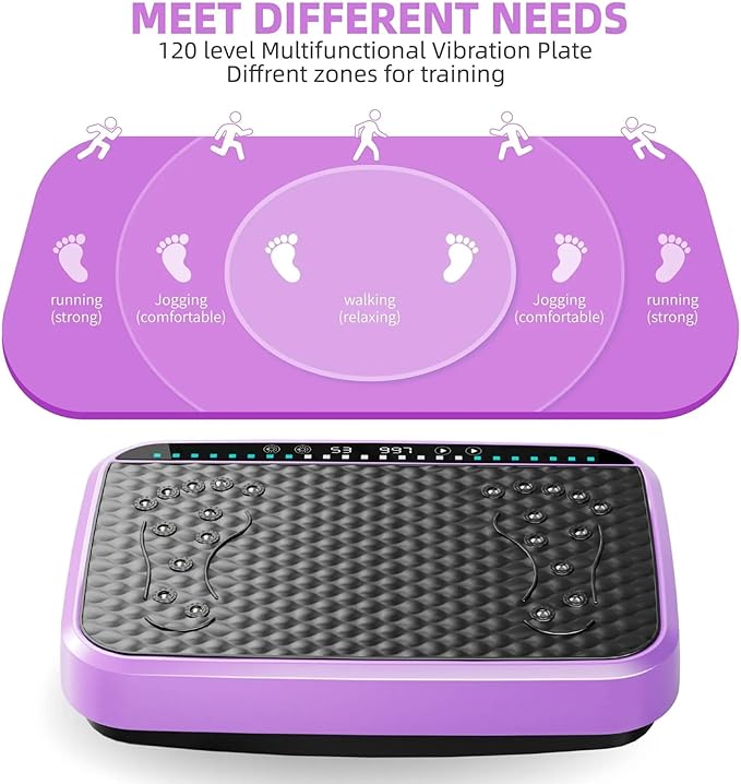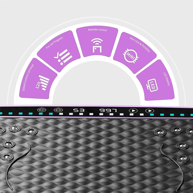 - 120 ADJUSTABLE SPEED LEVELS Personalize your fitness journey! With an impressive 120 speed settings, this platform adapts to your specific needs. Start with gentle vibrations for recovery and relaxation or crank it up for high-intensity fat-burning sessions. This versatility makes it suitable for everyone, from beginners to fitness enthusiasts looking to push their limits.