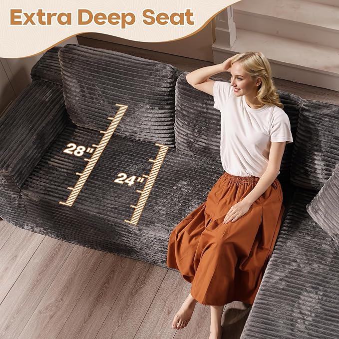 Cloud Sectional Couches for Living Room,U Shaped Modular Sofas No Assembly,135x107 Inches Plush Corduroy Oversized Floor Couch Set with Deep Seat Chaise,Grey