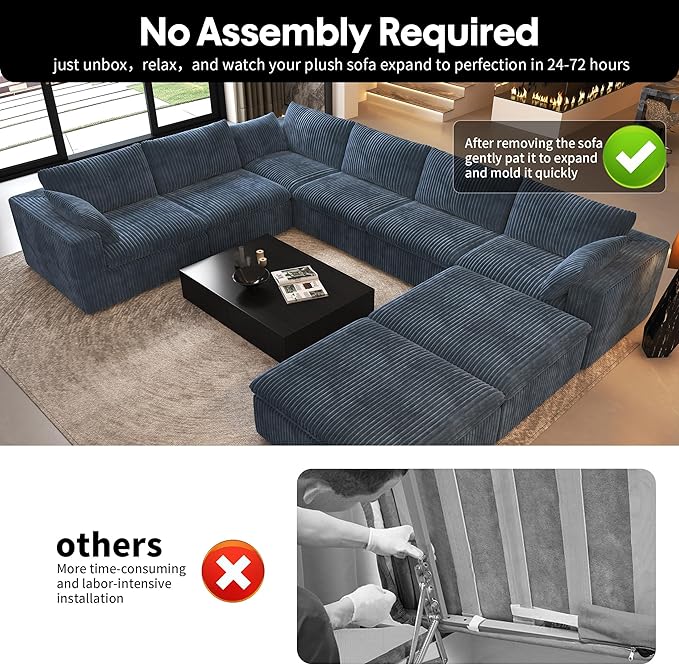 - No Assembly Required:Say goodbye to assembly stress. Simply unpack, lightly pat the pieces, and allow the couch to regain its full shape within 72 hours. Enjoy a hassle-free setup and the immediate comfort of your new sofa.