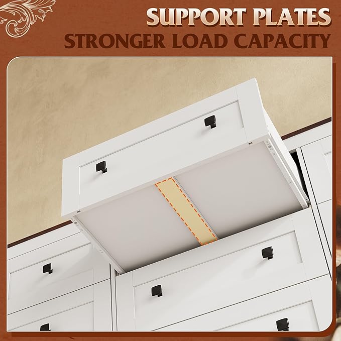 - đăStructure Stable and SmoothăEach Large drawer features a middle support plate for stability and load capacity, smooth metal slides for easy pulling, which allows drawers to open fully without tipping for better storage.