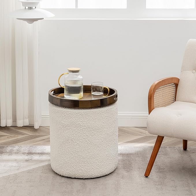 - Unique Ottoman: The ottoman features a round, unique minimalist cylinder-inspired design that adds a contemporary and artistic touch to any space. With a compact 18-inch seat, the comfy high-elasticity ottoman provides ample room for sitting or resting your feet or as side table