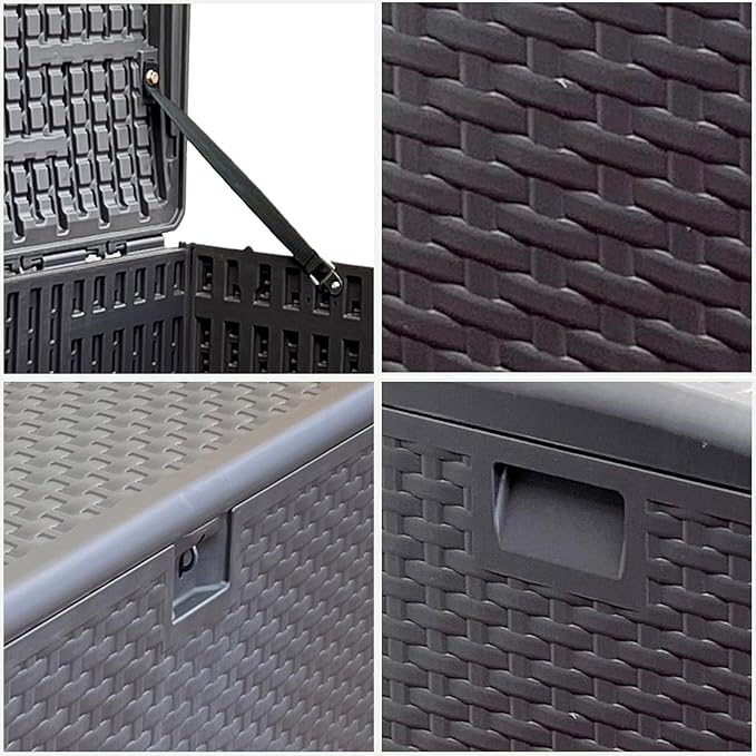 - Durable Resin Construction: Built with double-wall resin(HDPE), maximum weight capacity of 600 pounds,this outdoor waterproof deck box ensures long-lasting reliability and enhances strength and durability for long-term use,Our storage box is lockable, ensuring the safety of your belongings.