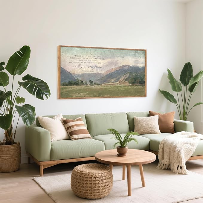 - Numbers 6:24-26 May The Lord Bless You Wall Art-- Aurlan watercolor mountain wall art set conveys a sense of tranquility, harmony, and sacredness through the combination of natural landscapes and religious texts. It is not only a beautiful landscape painting but also a source of spiritual comfort and blessing.