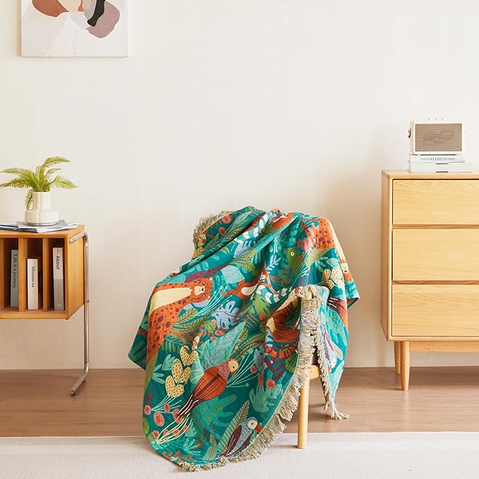 MSGKV Throw Blanket for Couch Cotton Muslin Breathable Animals Blanket 50"x60" Sofa Chair Blankets for All Seasons Lightweight Farmhouse Blankets Home Decor