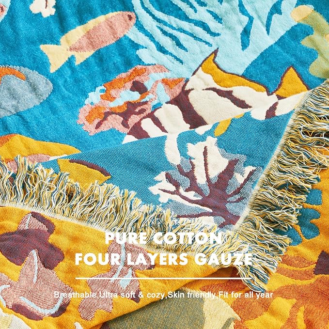MSGKV Throw Blanket for Couch Cotton Muslin Breathable Cute Ocean Animals Blanket 50"x60" Sofa Chair Blankets for All Seasons Lightweight Farmhouse Blankets Home Decor