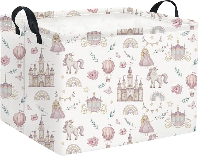 HIYAGON Rectangular Baby Girl Basket Kids Baby Storage Basket Toy Storage Bin Organizer Box Room Decor(Castle)