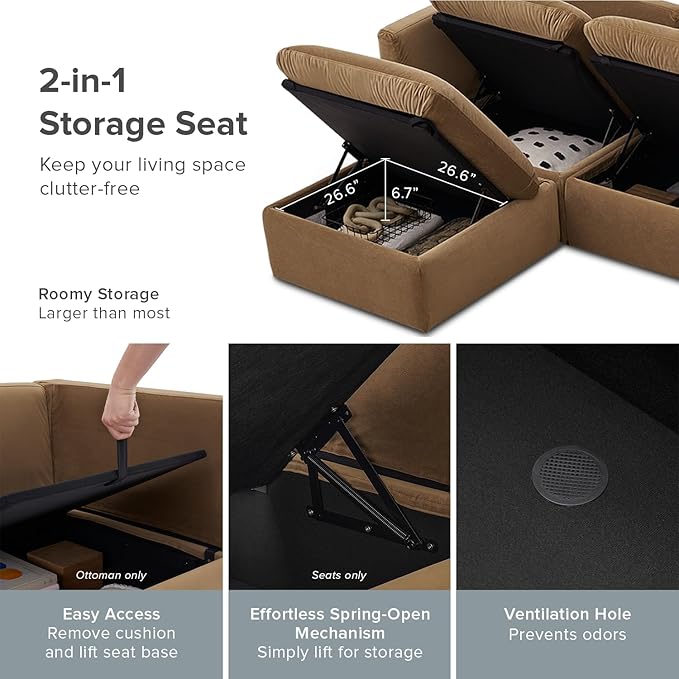 - Ample Hidden Storage for a Tidy Home: Keep your living room clutter-free with generous built-in storage beneath the seats. It’s perfect for stashing blankets, pillows, or other everyday items, ensuring everything you need is always within reach—while staying out of sight