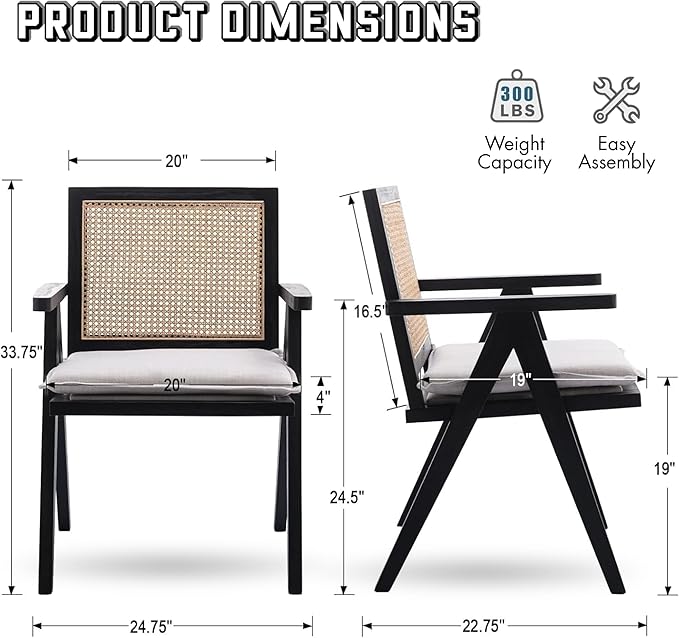 - Floating Back Design: The open-weave rattan back and minimalist frame make this rattan accent chair ideal for boho, mid-century or Scandinavian spaces. Black wood legs contrast beautifully with natural fibers, elevating kitchen tables or home office