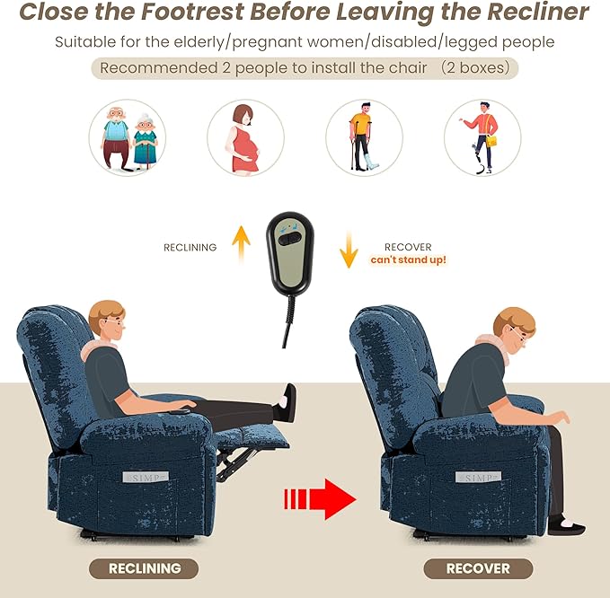 - POWER RECLINER - This power recliner chair expands the footrest and backrest 90°-145° with the remote control, so you can stay in the center at any angle and completely relax, perfect for activities such as watching TV, sleeping and reading.