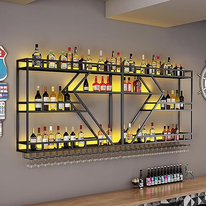 - VERSATILE DISPLAY: Multi-functional shelving perfect for wine bottles, stemware, and decorative items, ideal for home bars, restaurants, or entertainment areas