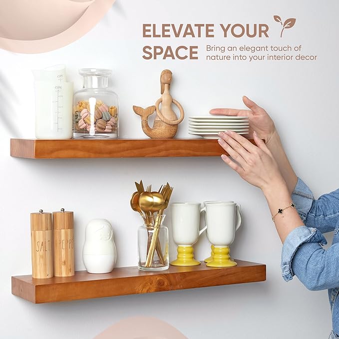- AUTHENTIC WOOD GRAIN - Enjoy the timeless elegance of real wood. Handcrafted from the finest 1.75" Thick natural pine wood measuring 24" Wide x 6.5" Deep x 1.75". Our shelves highlight the inherent charm and durability of high-quality wood. Each Shelf reveals its unique character of knots and natural wood grain; each ledge is a little different but equally stunning.