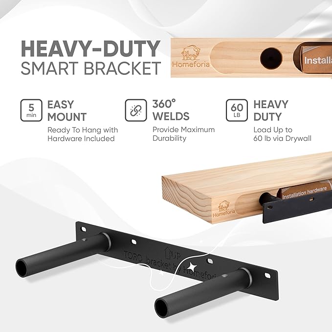 - UNSHAKEABLE SUPPORT - Trust our shelves to hold your heaviest items with ease. Designed to line up with 16" framing studs on center, our hidden mounting bracket ensures a flush-to-wall fit.