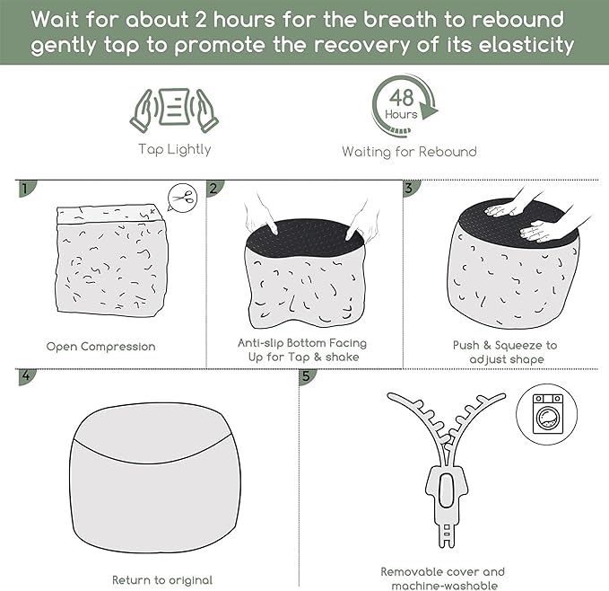 - 【REMOVABLE DESIGN】- For convenience and ease of use, this pouf ottoman comes stuffed with memory foam chunk pouf filler. Meanwhile, the cover can be easily set with the large round zipper on the bottom after cleaning.