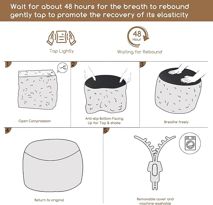 - 【REMOVABLE DESIGN】- For convenience and ease of use, this pouf ottoman comes stuffed with memory foam chunk pouf filler. Meanwhile, the cover can be easily set with the large round zipper on the bottom after cleaning.