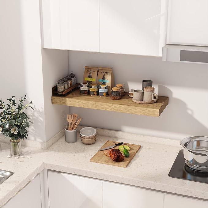 Floating Shelves 30 Inch Long, 12 Inch Deep Floating Shelf for Books, Rustic Wood 30 x 12 Storage Shelves for Wall Storage & Display, Thicked Wall Shelf for Kitchen, Living Room, Oak Color, 1 Pack