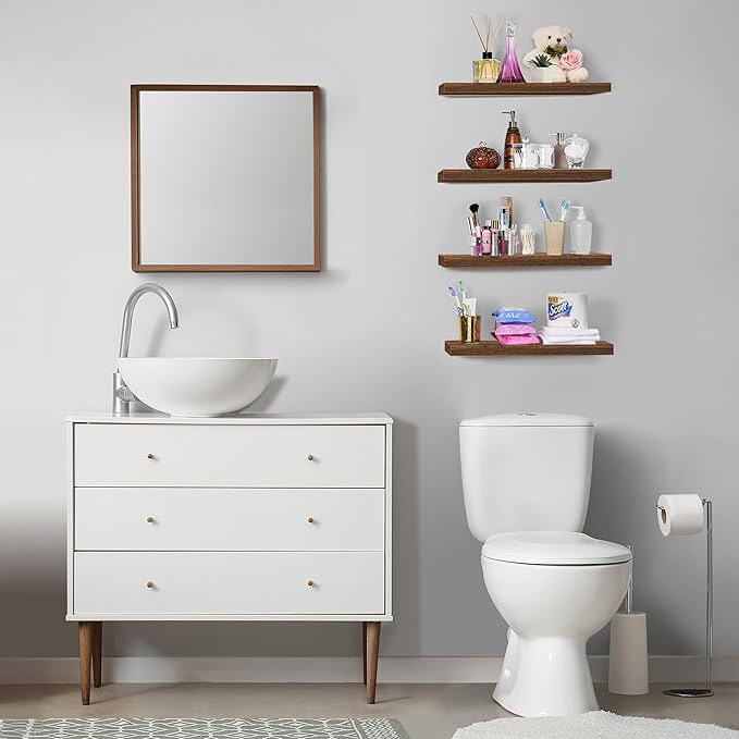 Sorbus Floating Shelves for Wall, Bathroom Shelves Wall Mounted for Kitchen, Bedroom, Living Room, Bathroom Storage, Over Toilet, Hanging Book Shelf for Wall Home Decor (Walnut, 4 Pack)