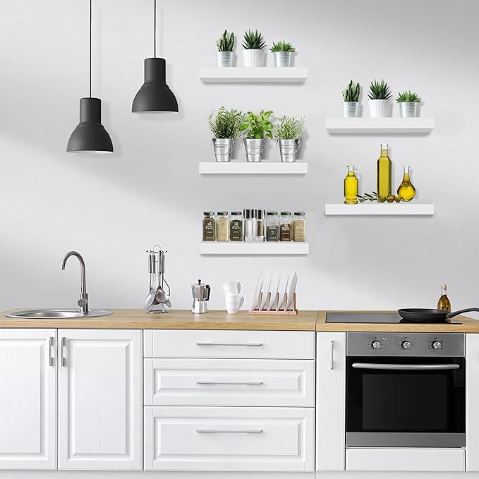 Sorbus Floating Shelves for Wall, Bathroom Shelves Wall Mounted for Kitchen, Bedroom, Living Room, Bathroom Storage, Over Toilet, Hanging Book Shelf for Wall Home Decor (White, 5 Pack)