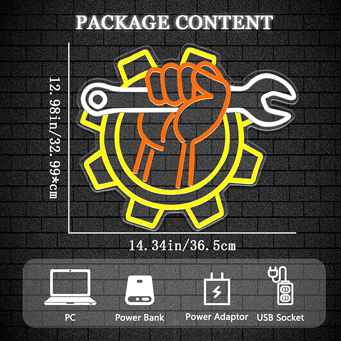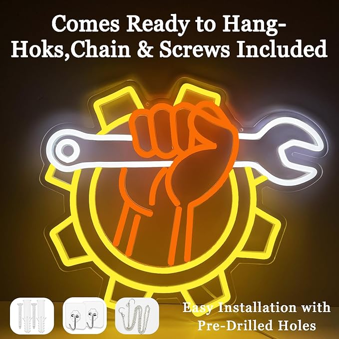 - BOLD GARAGE AESTHETIC: Crisp wrench-and-gear outline pops as a wrench neon sign and led garage sign, bold industrial wall decor for garages, man caves, gaming setups, or car rooms, while also doubling as standout car wall art