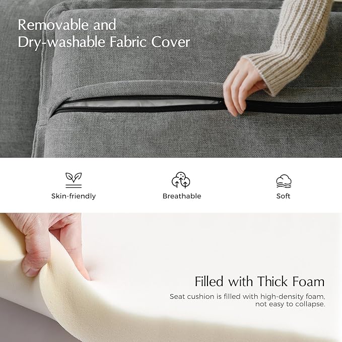 - Luxury Chenille Fabric: Upholstered in soft and durable chenille fabric with elegant ruffled edges, this sofa combines comfort and style. The removable, dry-cleanable fabric covers make maintenance a breeze.