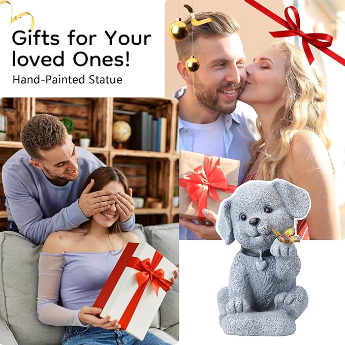 Solar Puppy Dog Garden Decor - Cute Pet Memorial Statue, Auto On/Off LED Light, Weatherproof Resin for Yard Pathway & Dog Lover Gifts