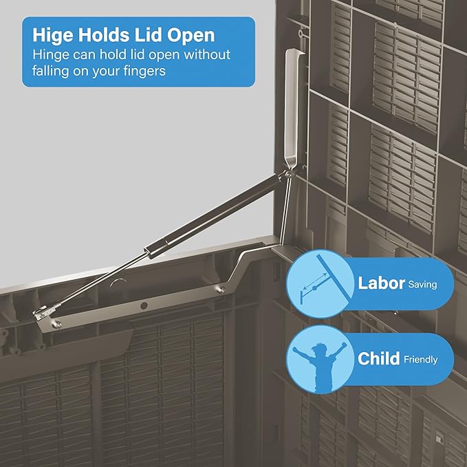 - 🌞【20-minute Quick Assembly】Designed for hassle-free setup, this deck box requires no tools and assembles in under 20 minutes with step-by-step instructions. The smooth-opening hinges and lightweight panels streamline storage access for busy homeowners.