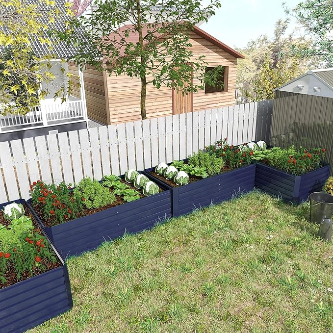 8x4x2 ft Outdoor Raised Garden Bed, Large Metal Planter Raised Beds, Planters for Outdoor Plants for Vegetables, Flowers, Herbs, Fruits, and Succulents.(4 Pcs,Blue)