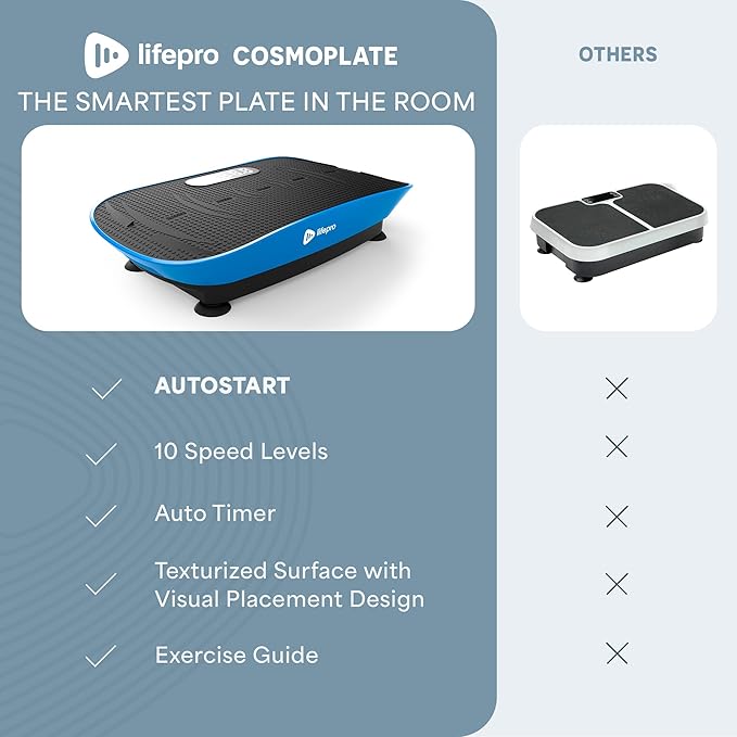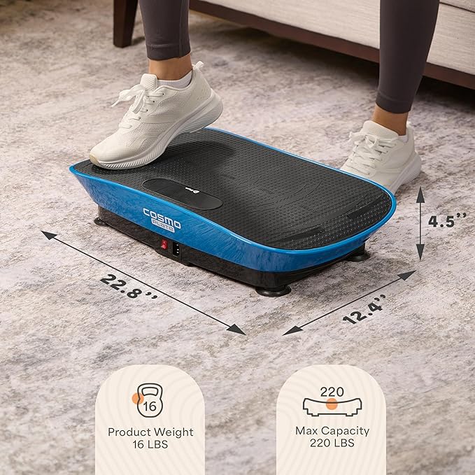 - Auto Start Mode – The CosmoPlate activates the moment you step on—no buttons needed. Smart body detection simplifies your routine for quick-start sessions, balance training, and gentle full-body activation.