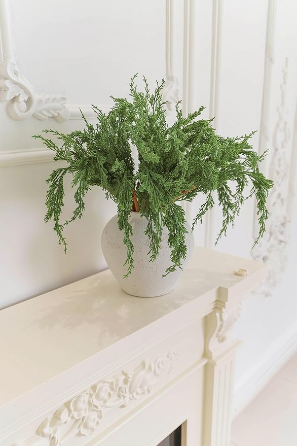 - 2. Premium Quality and Natural Appearance: Crafted from high-quality PE, these branches mimic the natural green color of real cedar, offering both aesthetic beauty and durability.After opening the package, simply let the product air out for a few hours to eliminate any initial odor, ensuring a better experience. Note: Vase not included.