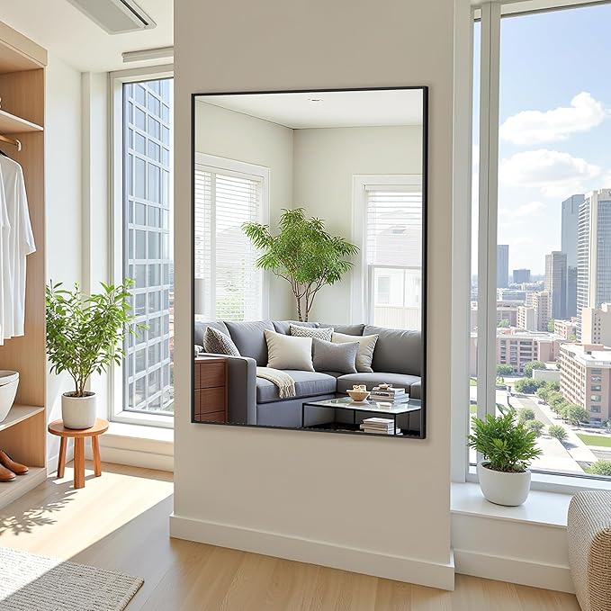 - Aluminum Alloy Frame: Built with a high-quality, rust-proof, and anti-corrosion black metal frame, this rectangular mirror withstands humidity and adds a sleek, modern touch to any room