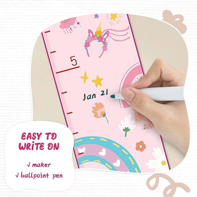 - Easy to Mark: The height measurement is engraved with clear and precise scales, you can customize different shapes of marker cards to record baby's height(with name and date), which is convenient for you to record your baby's growth moments at any time and witness every step of your baby's growth.
