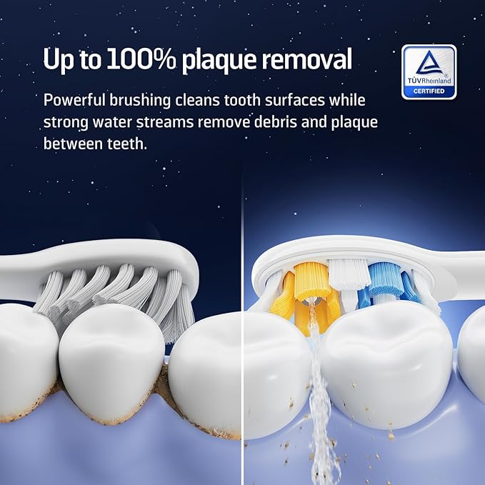 - EFFORTLESS 2-IN-1 ORAL CARE: Experience the convenience of a single device that integrates both brushing and flossing functions, simplifying your oral care routine.